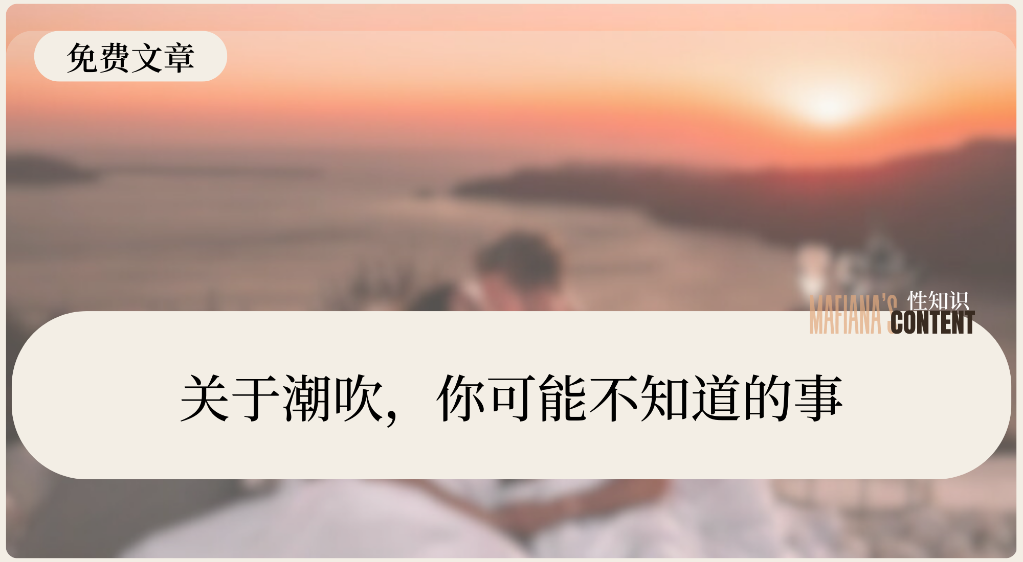这篇文章比较长,所以这次做了目录 我们会全方位讲清楚,什么是潮吹,怎么潮吹,男生和女生分别怎么做去潮吹 目录 1.潮吹的概念 2.潮吹的发展历史 3.真实的潮吹感受 4.练习潮吹前的注意事项 5.潮吹前必要的放松准备 6.女生有效潮吹指南·手指版 7.女生有效潮吹指南·做爱版 8.提高潮吹率的小建议 9.潮吹后要做什么 什么是潮吹 女性潮射,或者你可能听过叫做“潮吹”、喷水、吹水等名字,基本上是指一些女性在性高潮的时候,会有液体从阴道附近射出来。在英文中,这个现象有时被称为“squirting”或“gushing”,不过有些人觉得这两者可能跟喷水不完全是一回事。 防盗防搬运,关注推特@MissMafiana获取免费资料 关于这个现象的研究其实挺少的,到现在也没有统一的看法。原因有很多,比如研究方法有问题,或者用来观察的人数太少、选择得太严,